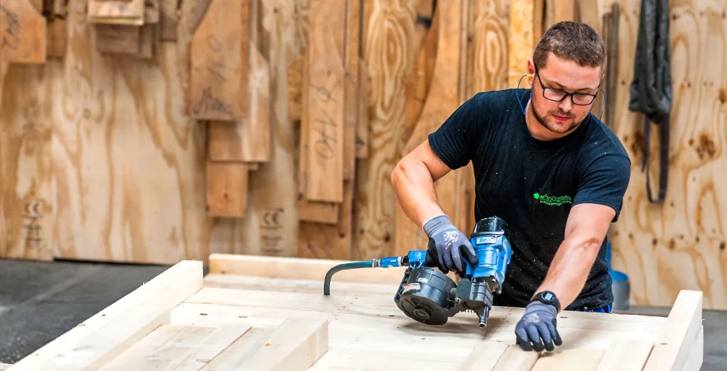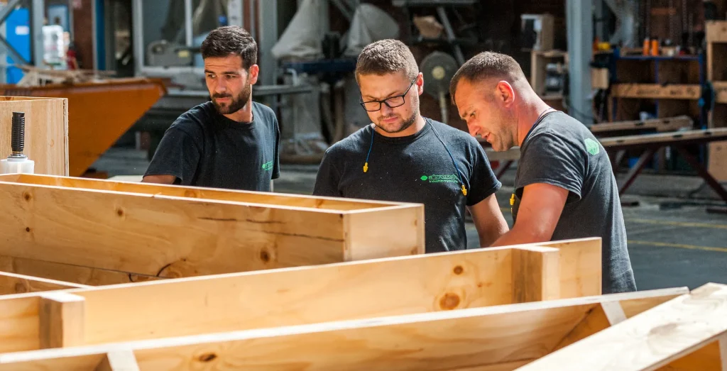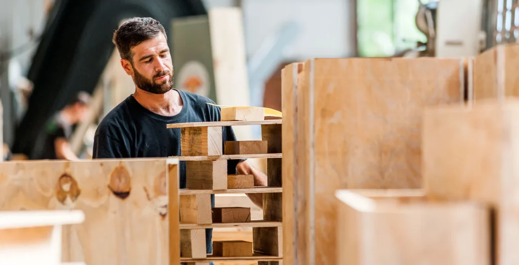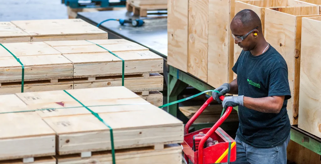 Exportverpackungen sind meist aus Holz oder Holzwerkstoffen gefertigt. Zur Verarbeitung werden Bretter, Dielen, Holzwerkstoffe oder Kanthölzer zusammen gefügt. Alle zur Verarbeitung gelangenden Holzwerkstoffe, müssen den jeweiligen Abmessungs- und Qualitätsnormen, sowie den jeweiligen Einfuhrbestimmungen verschiedenster Länder entsprechen.